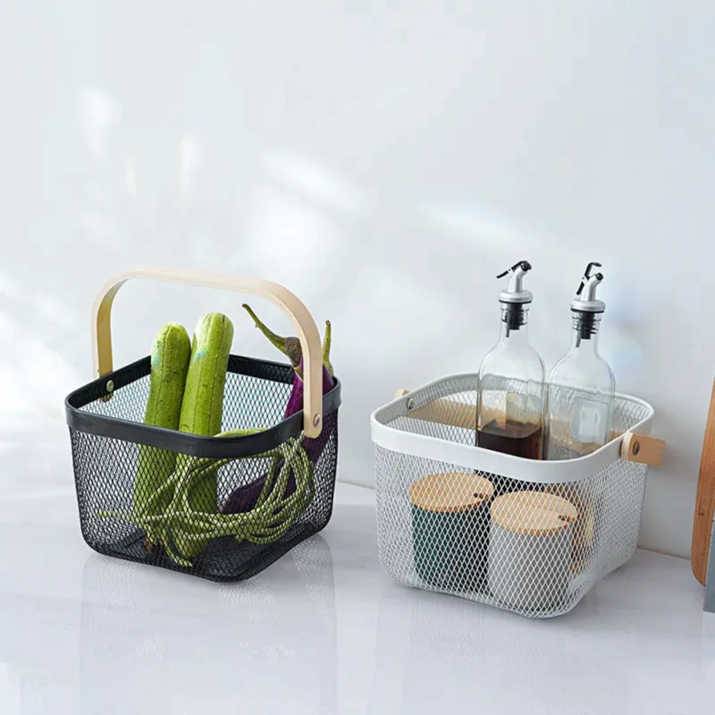 # Canasto Organizador Metal con Manija Madera