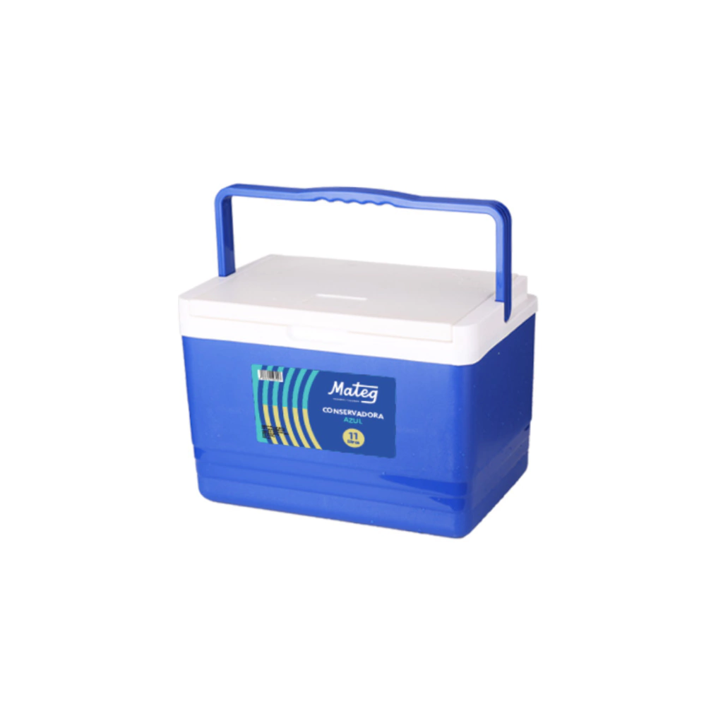 Conservadora térmica Mateg de 11 Litros. Plástico reforzado por fuera y telgopor por dentro, permitiendo excelentes prestaciones térmicas y durabilidad.