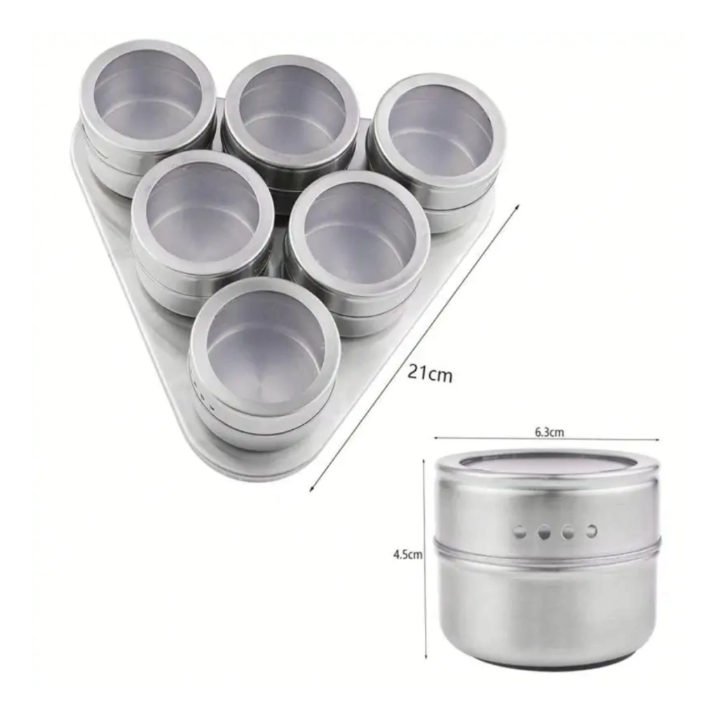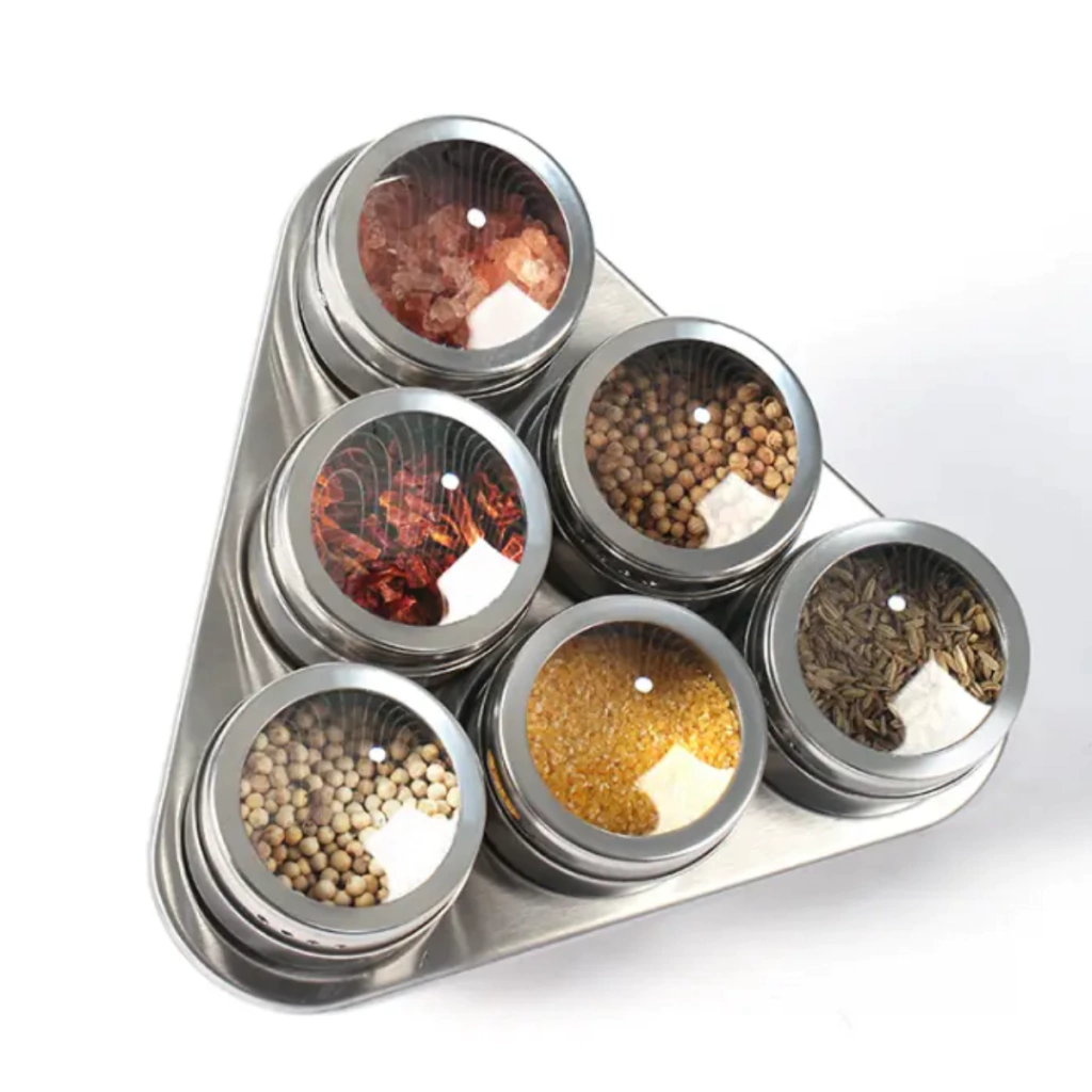 # Especiero de Acero Inox Iman con Base Triangular x 6 frascos